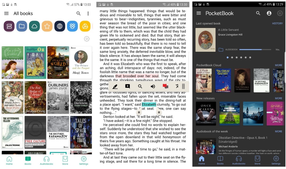 A PocketBook Reader nem csak egy mobilolvasó alkalmazás, hanem egy valódi könyvklub az eszközén. A PocketBook Readernek köszönhetően Különböző fájlformátumokat olvashat és hallgathat, szinkronizálhatja könyvtárait és olvasási pozícióit, megoszthatja véleményét a könyvekről és ajánlásokat olvashat és minden könyve egyszerre a rendelkezésére állhat mobiltelefonján vagy táblagépén.